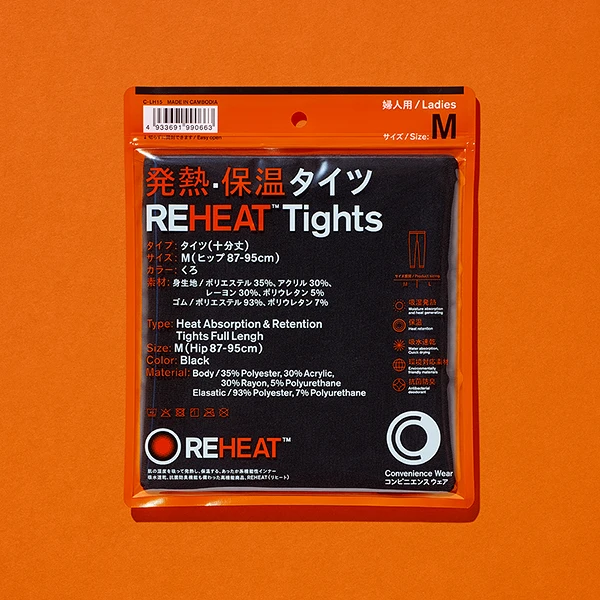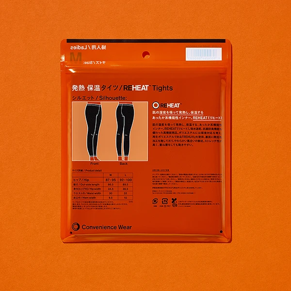 肌の湿度を吸って発熱し、しっかり保温する機能性インナーです。ウエストゴム部分にジャカード織で「Convenience Wear」のロゴを入れ、かん止め部分にはファミリーマートのコーポレートカラーのステッチを入れました。
