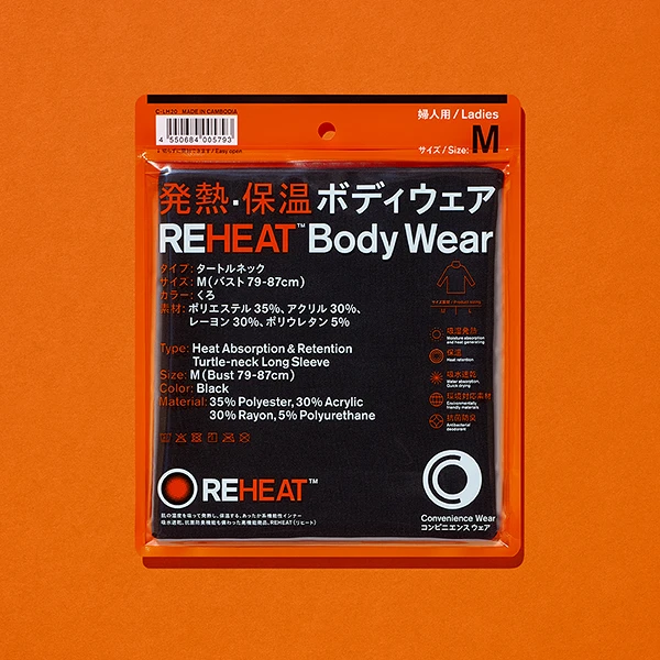肌の湿度を吸って発熱し、しっかり保温する機能性ボディウェア です。左袖にファミリーマートのコーポレートカラーをステッチしました。