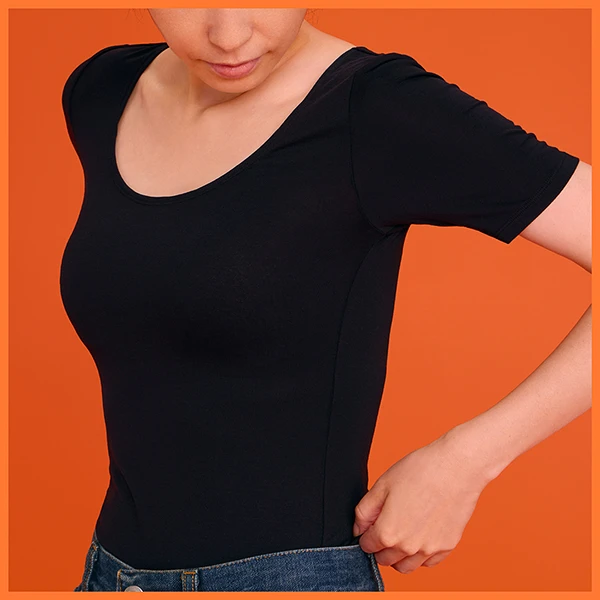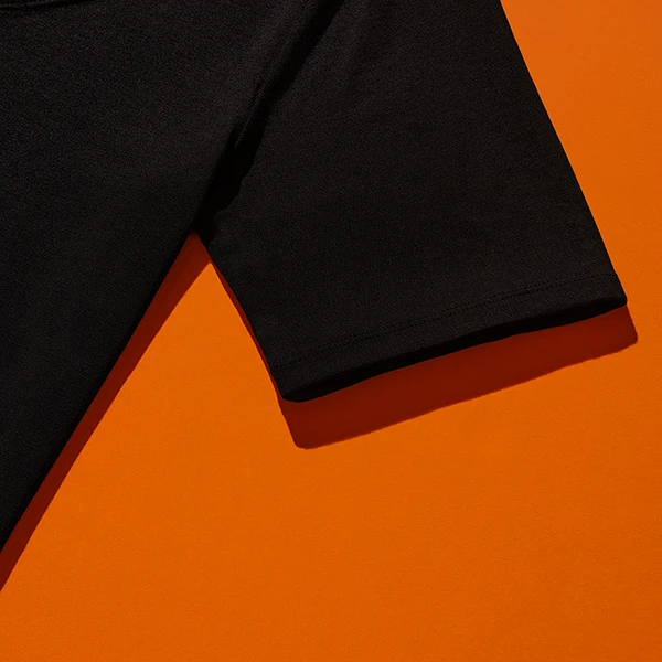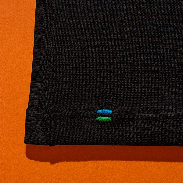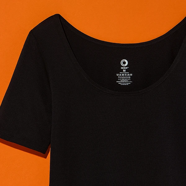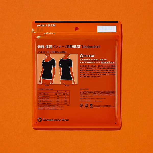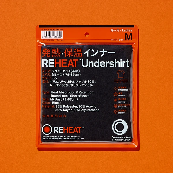 肌の湿度を吸って発熱し、しっかり保温する、機能性インナーです。室内外などの温度差がある環境でも利用しやすい半袖をラインアップしました。前身頃の裾にファミリーマートのコーポレートカラーをステッチしました。