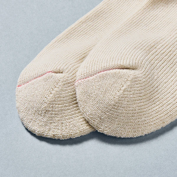 抗菌防臭で、ウールならではの、蒸れにくく、あたたかく快適に過ごせるアイテムです。つま先部分の縫い目部分には、赤い糸を使用し配色にもこだわりました。