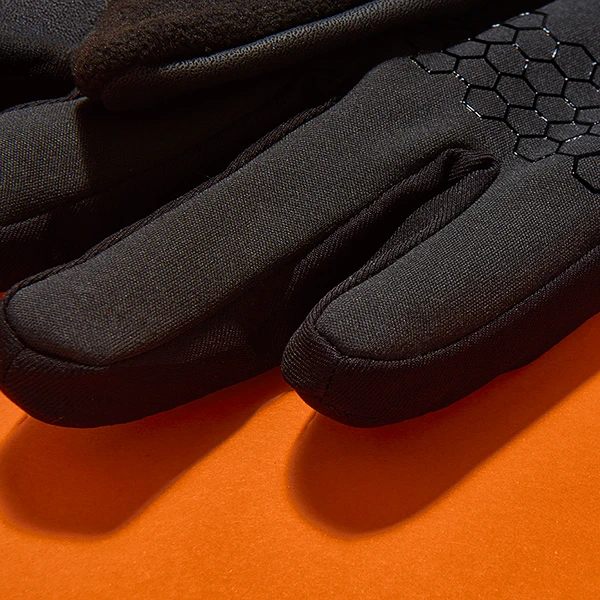ポリエステルとフリースのコンビデザインの手袋です。滑り止め付きで、親指、人差し指部分はスマートフォンにも対応しております。