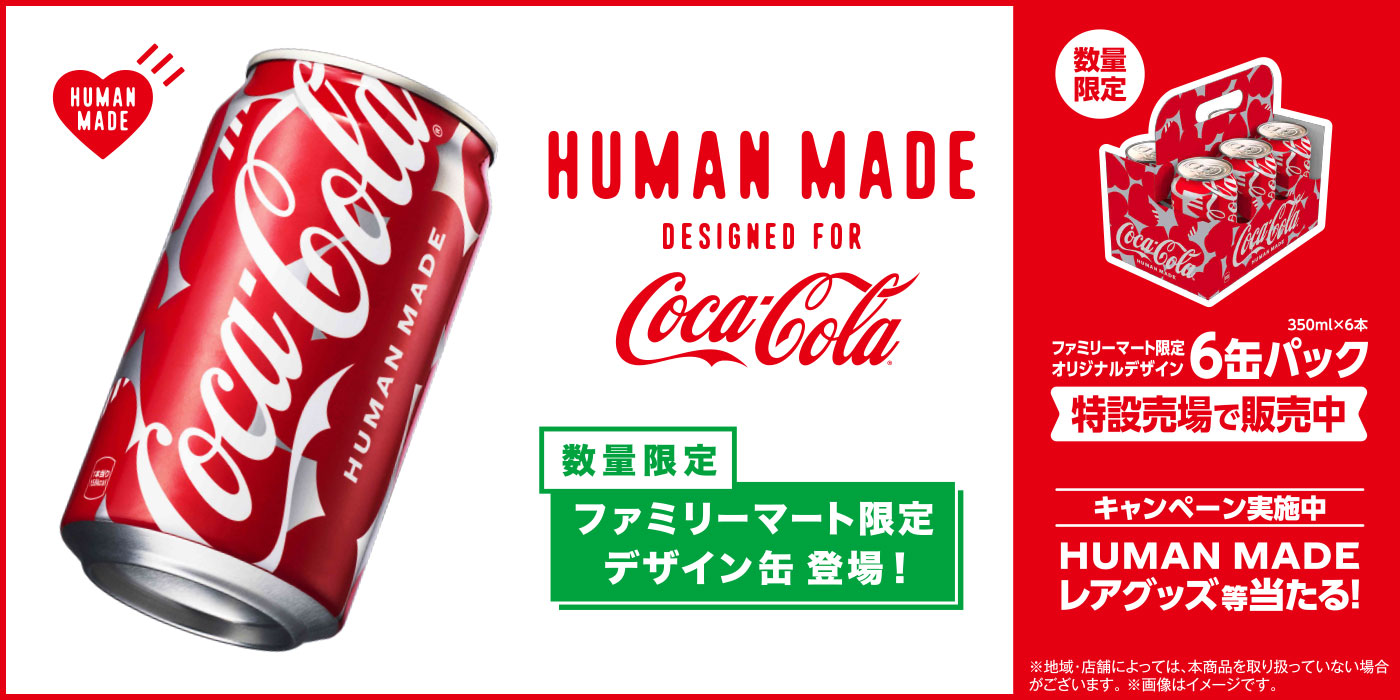 HUMAN MADEとコラボした「コカ・コーラ」350ml缶。世代やシーンを超えて愛される定番の一本に、HUMAN MADEの世界観をまとわせた限定デザイン仕様です。
