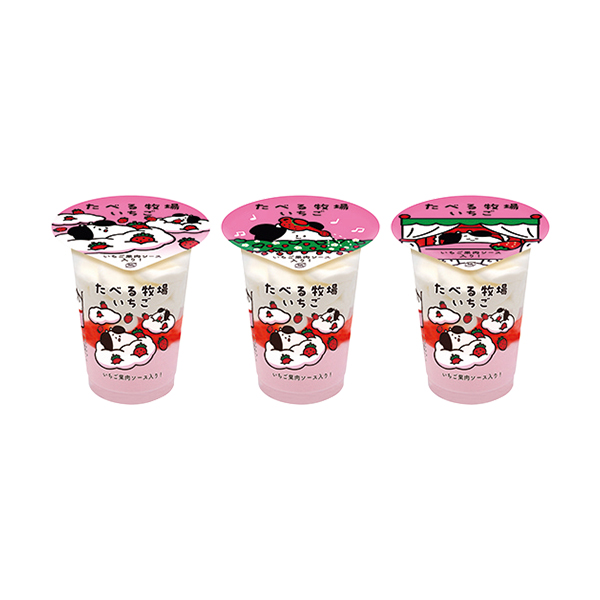 いちごアイスにいちご果肉ソースをのせ、北海道産の牛乳と生クリームを使用したコクのあるミルクアイスをあわせました。
