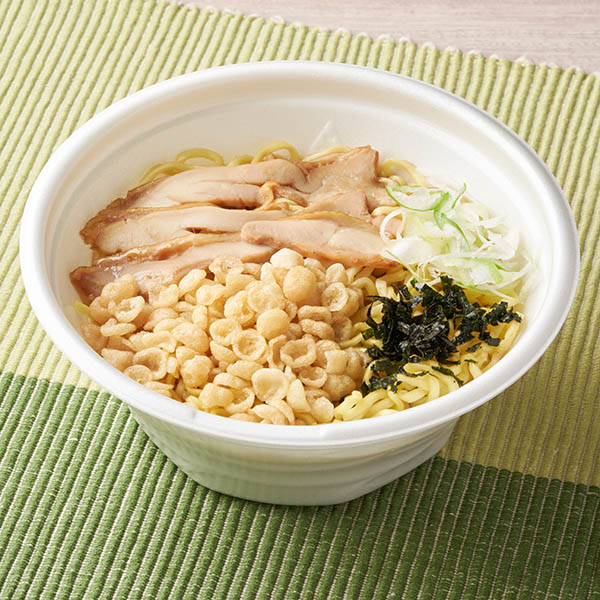 つるっとのどごしの良いそうめんに、鶏の旨みをベースにゆず皮の香りを加えた塩味のあっさりスープを合わせた温かいそうめんです。具材として蒸し鶏・水菜・錦糸たまご・花かつおをのせました。