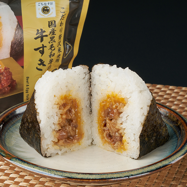 「茨城をたべよう」企画商品です。しょうゆご飯の中に炙り焼きをした鶏皮を甘めな味付けのタレとあえてトッピングしたおむすびです。