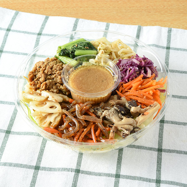 レモンがさわやかなパスタサラダです。パセリ&ブラックペッパーを和えたパスタにベーコンやチーズ、野菜をトッピングしました。レモンクリーミードレッシング付きです。
