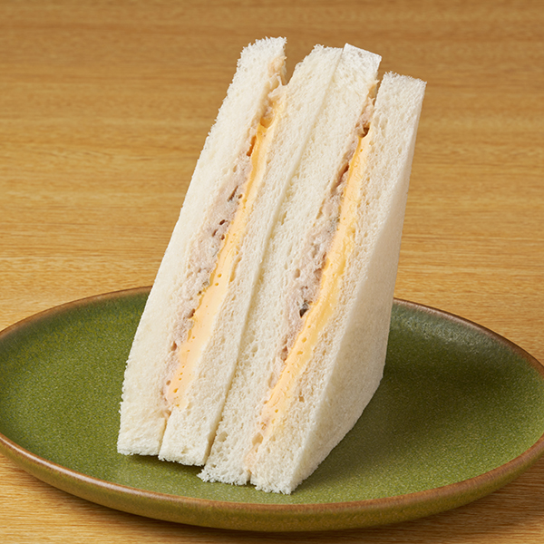 ハムマカロニサラダサンドと、和風たまごサラダサンドの2種類の味が楽しめる、パンが厚くて満足感のあるサンドイッチです。