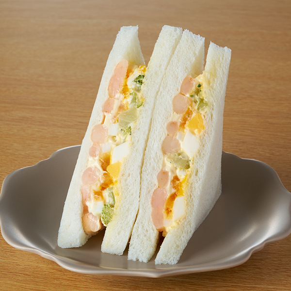 ベーコン・レタス・トマト・ゆでたまごを使用した彩りの良いサンドイッチです。