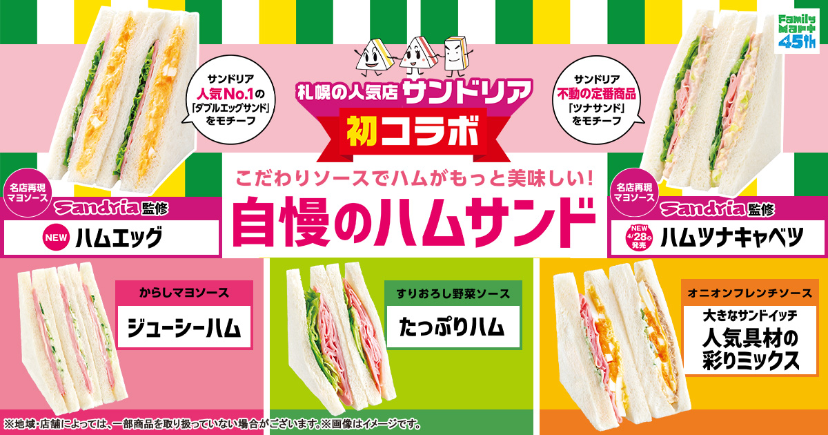 札幌のサンドイッチ専門店「サンドリア」監修のサンドイッチです。「サンドリア」人気No.1商品「ダブルエッグ」をモチーフにしました。ゆでたまごを使用し、食感と風味にこだわったたまごサラダに、ハム、グリーンリーフを合わせました。