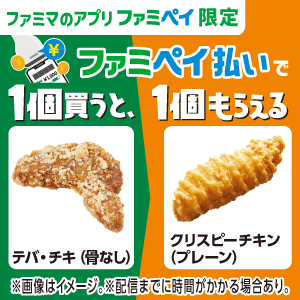 期間中、ファミペイ払いで対象商品1点を購入いただくと、特典の利用期間で対象商品1点に使える無料クーポンがもらえます。