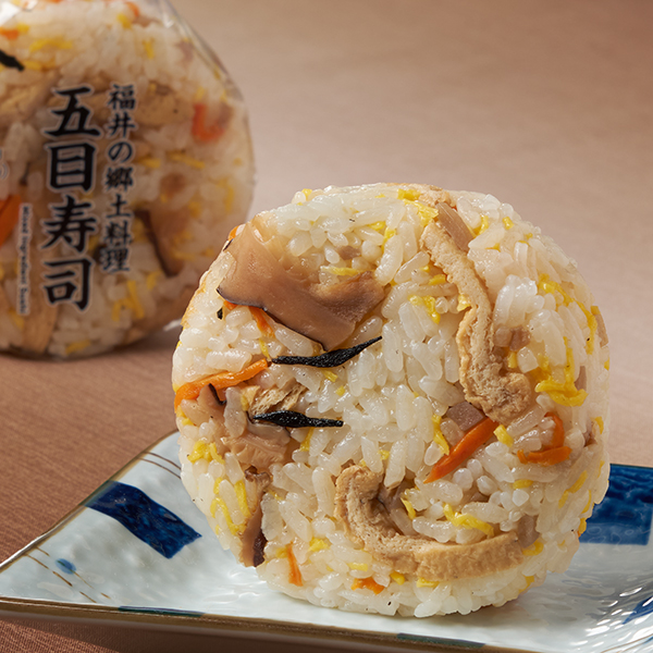 いなり寿司2個と太巻寿司2個を組み合わせた、食べきりサイズの助六寿司です。販売地域に合わせて巻寿司の組み合わせを変えています。