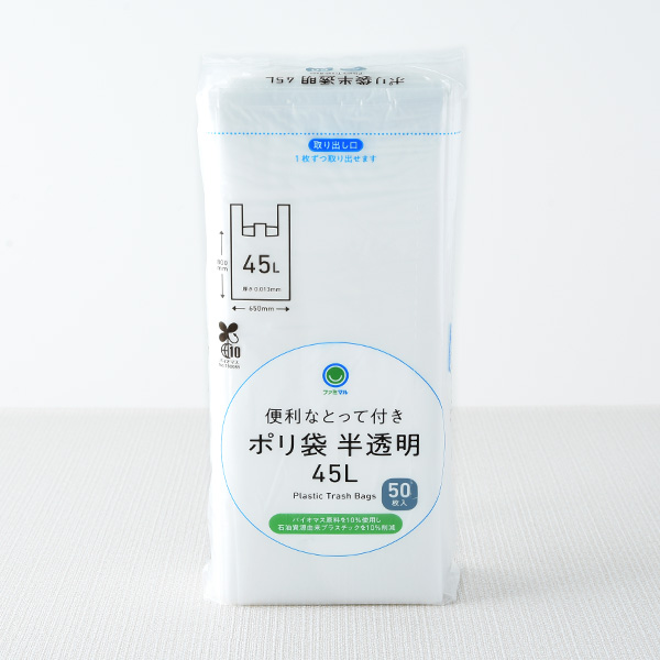 ・「便利なとって付きポリ袋半透明45L 50枚入」453円(税込498円)