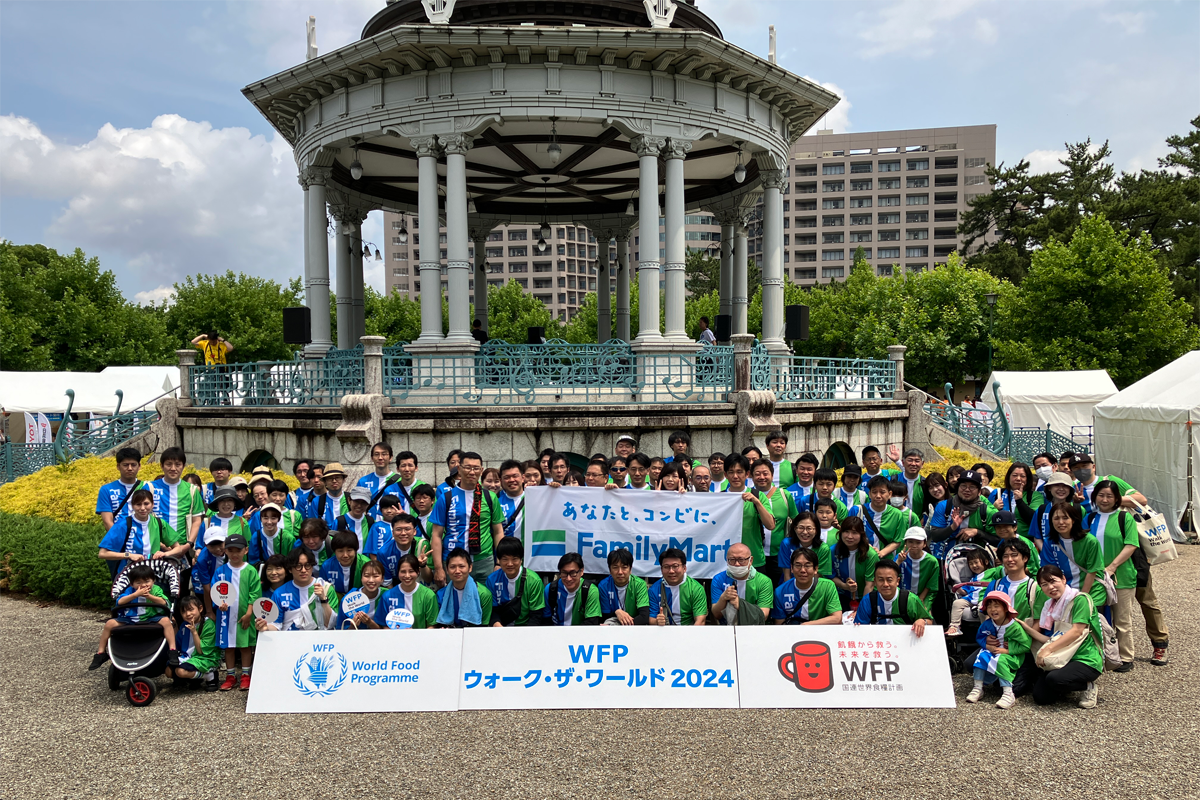 ファミリーマートは、世界で多くのこどもたちを苦しめている飢餓をなくすためのチャリティウォーク「WFPウォーク・ザ・ワールド」に特別協賛し、社員もボランティアで参加しています。飢餓問題への認識を高めるとともに、参加費の一部は、国連WFPの「学校給食支援」に役立てられます。2025年は、横浜・大阪・名古屋の3会場で社員や加盟店、そのご家族等約500名の方々が参加しました。