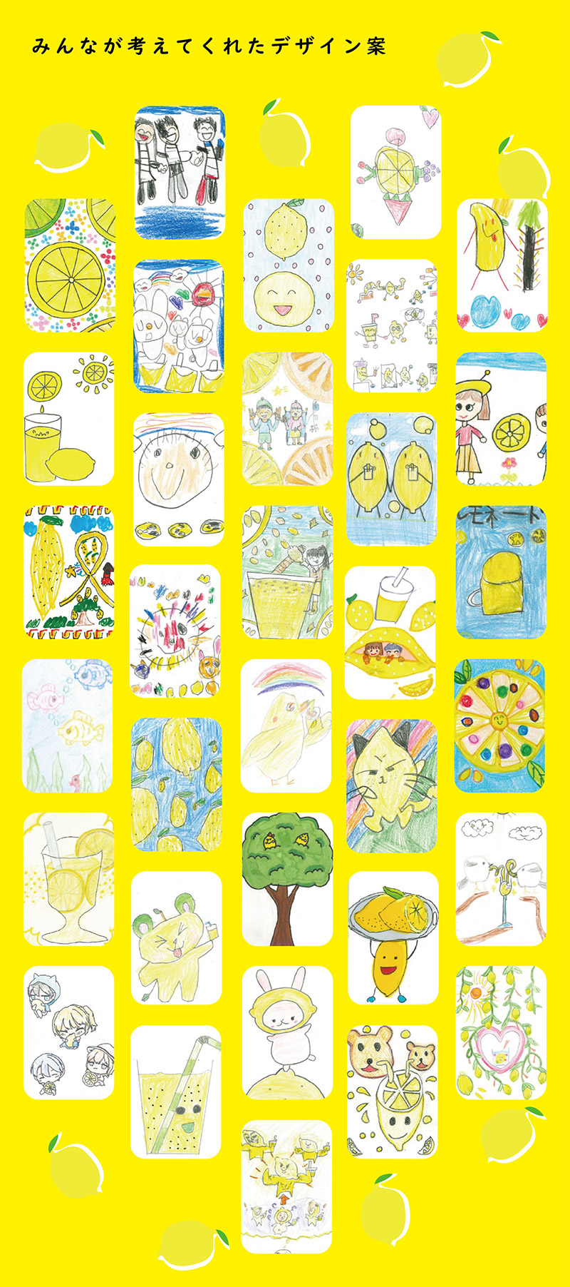 僕は5歳のときに小児がんになりました。今も治療を続けながら学校にいっています。デザインに採用されてとても嬉しいです。お店で発売されるのが楽しみです。たくさんの人に買って飲んでもらいたいです。絵を描くとき、みんなのレモネードの会のメンバーの事を考えながら描きました。遠くの場所でもちがう年でも僕たちはみんな友達です。レモンは一つの木にたくさんの実がなります。形も大きさもそれぞれ違うけど、みんな集まって大きな木になります。僕たちもレモンみたいだなと思いながら描きました。
