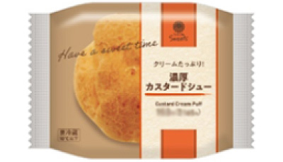 定番人気のシュークリームのパッケージフィルムを薄くして軽量化し、素材の一部にバイオマスプラスチック配合。年間約16トンの石油系プラスチック使用量削減見込み。